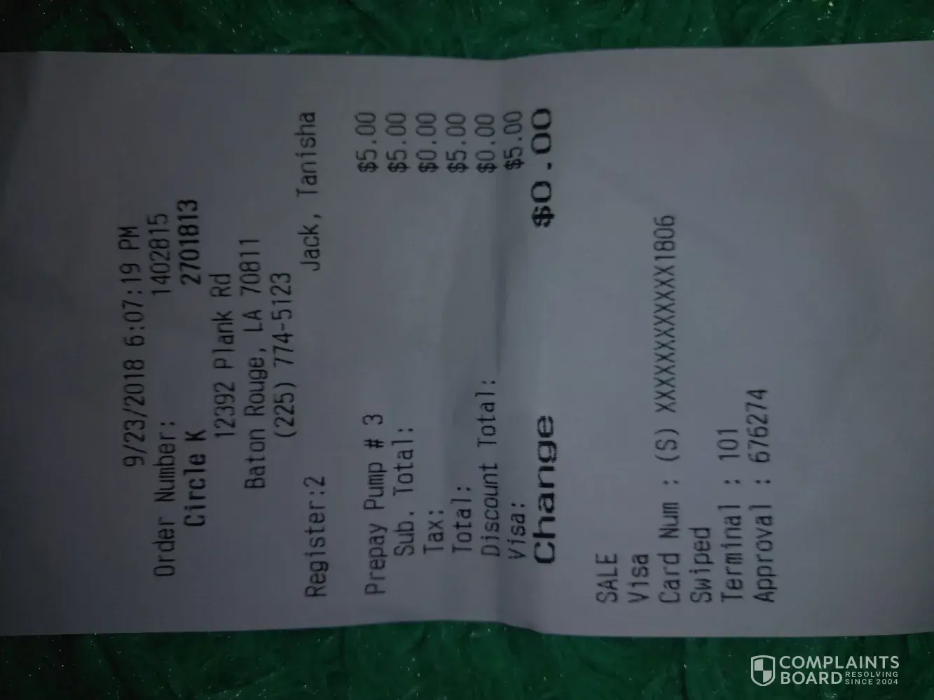 I went to circle k in Mount Holly, NC on Sept.9, 2018 and asked for regular gas . They swiped my card for $40, I went outside they only had 93 available because of the hurricane that was suppose to come. I asked for refund and a lady name Angi said it would be on my card in 48 hours. It's been two weeks and the 800 number they gave is for store issues only not customer service .