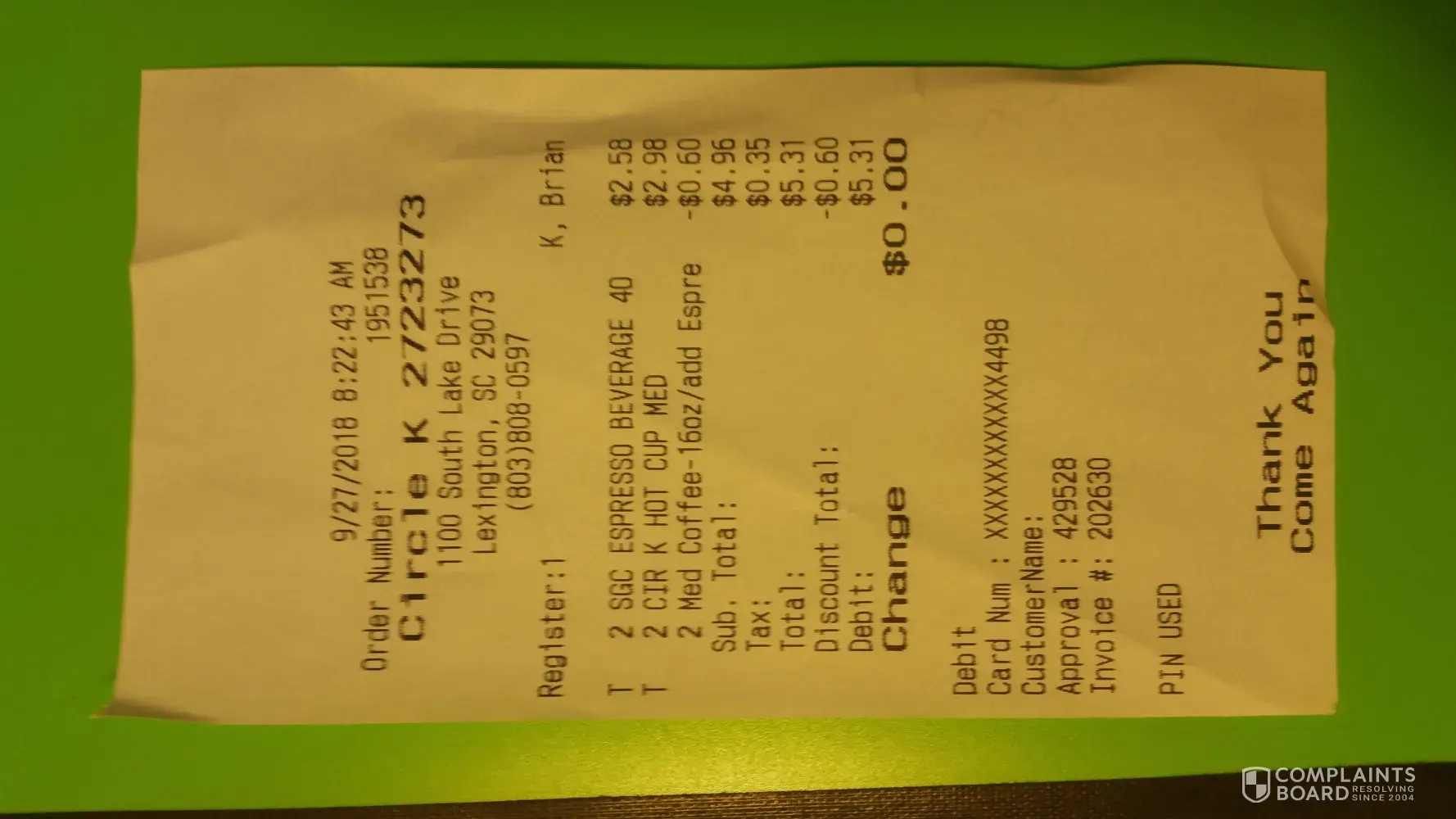 I went to the circle k at 1100 South Lake Drive Lexington SC this morning. I have avoided this location for years because of the terrible customer service by an employee by the name of Brian K. I decided to give this location another try and he happened to be the employee on shift this morning. Unfortunately he lived up to his reputation and was extremely rude and offensive the entire experiance. While making my coffee I heard a customer ask for plastic spoons, he huffed and puffed and spoke under his breath while restocking some for her. He then came to where I was preparing my coffee and angrily cleaned the area while huffing and puffing and glaring at me as if I created the mess. Then I proceeded to checkout. When I got to the counter he sarcastically asked "did you put your special shots in both?" Referring to expresso shots. I did not have a problem paying for the coffee and shots I was offended by the tone and way he asked if there was expresso in my coffee. I am beyond disappointed with circle k for allowing this man to work at that location for so many years. He has a reputation in the area because of his attitude and many people avoid that location because of experiences with him. I will not be returning to circle k if this is the conduct that is to be expected within this company.