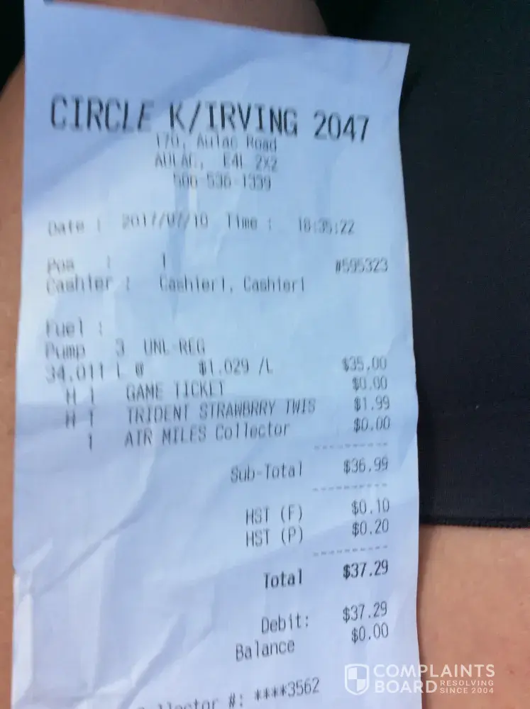 I just came from the Aulac NB Circle K/ Irving. My husband bought me a pack of gum while paying for his gas. When he came out and handed it to me I told him it was the wrong kind. I went back in and asked for a refund since they did not have the kind I wanted. The cashier tried to call someone then asked someone for help. Then said she wasn't sure they weren't allowed to do refunds. Then once she figured she could she wanted the debit card to put the $2 back on it. For $2 ! Really.? It was only $2. I left with the gum that I will never chew.Fed up waiting ! Why does a cashier need to call someone to do a refund on something that was bight 5 min earlier? I work in customer service myself, and have never had to put anything back on a debit card. Could be cash or debit unless it was on a credit card. Give the cashiers a little more leeway to do what they need to to keep the customer happy, !