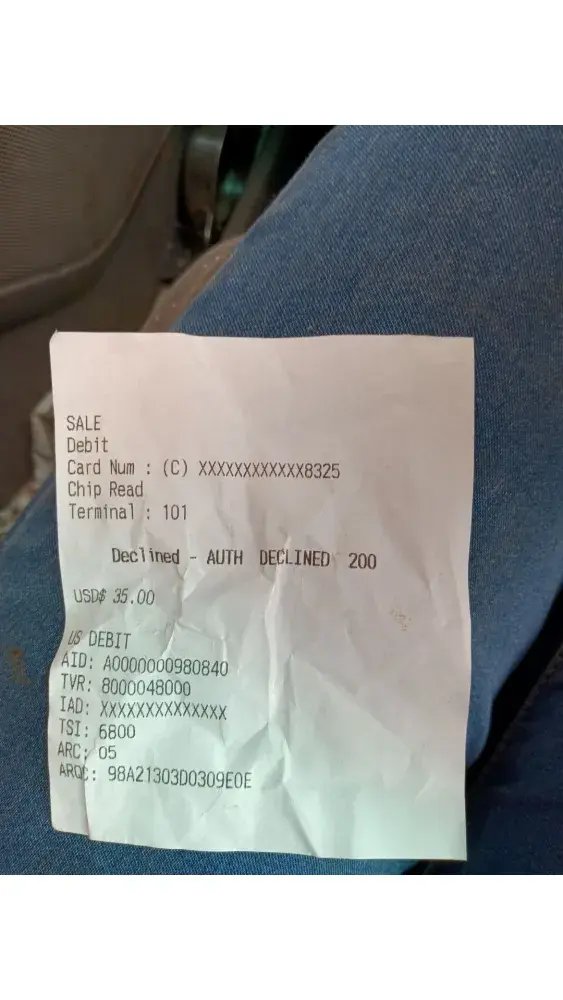 Two days ago I attempted to buy gas at this location. I started outside placing my card into the machine. After the machine read that the receipt that I needed would be unavailable. I stopped the transaction of getting the gas outside the store. I went inside instead. When I get inside to pay for my gas. My cash app card is declining for insufficient funds. When I looked in my cash app history the gas station pump had already too my 53 dollars and change. The workers could not help me because they said it has nothing to do with them. I never was able to get gas. And I am still waiting on my cash to be returned from my card.