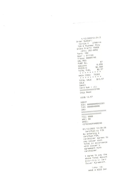 Overcharge on my ticket after purchasing gas 1/12/2022