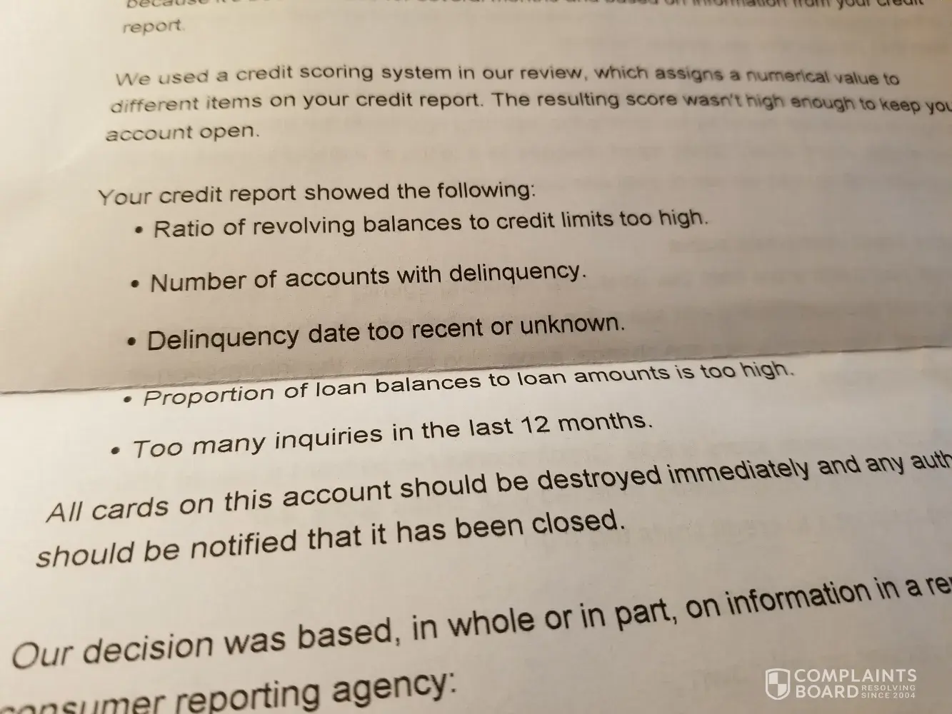 Closing one account and lower account. Disagree with decision also stating my case.