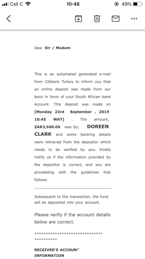 It's been almost a week now she sent me an email stating that Citibank approved a payment and all information about the transaction