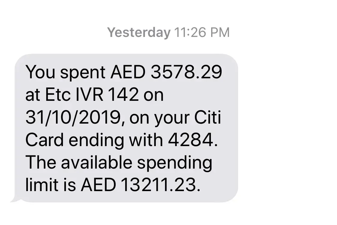 I received a message on 31/10/2019 at 11:26PM stating that a transaction was made for AED3578.29 at Etc IVR 142. On complaining to the bank, my card was blocked and the matter will be investigated. Will I be made to pay this amount before the matter is resolved? How can Etisalat make a transaction without any authorization from me? Is this why we were made to give our credit card details before taking the mobile subscription?