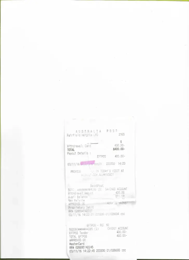I have attached the documents required to proof t.hat i have made a payment in the Post office of $400.00 and on the back of the statement shows the amount that i initially paid.