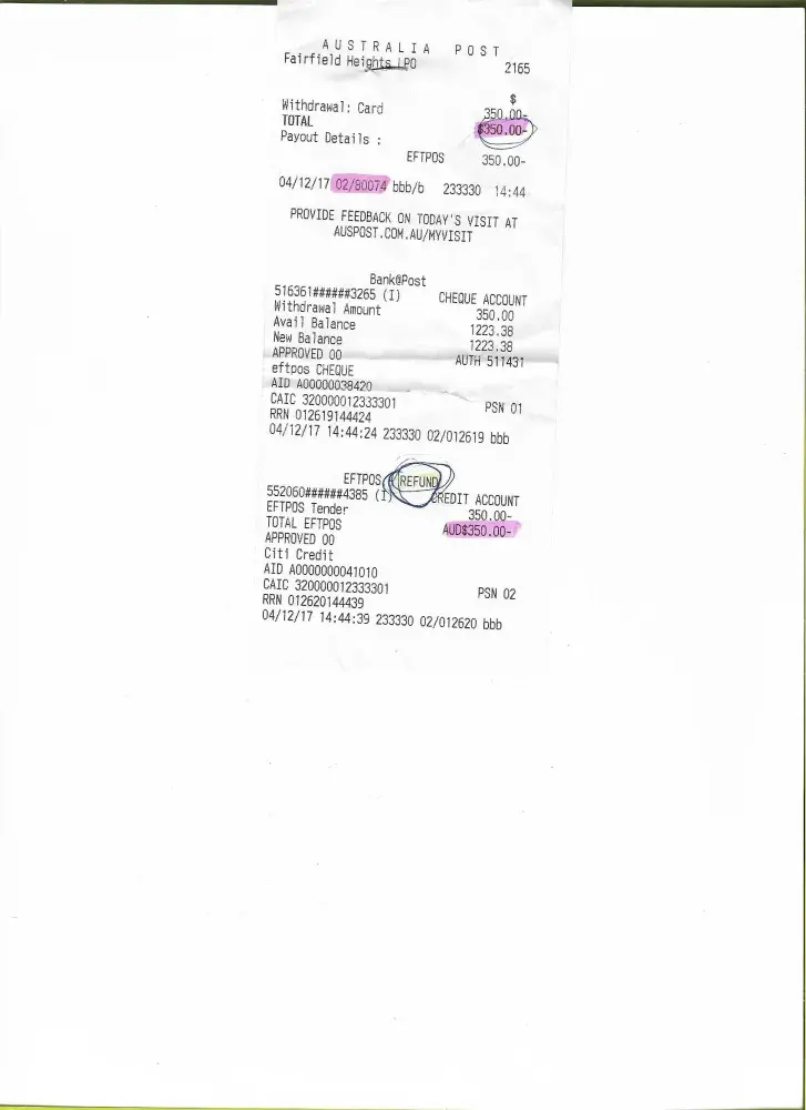 I have paid $400.00 on the 03/11/2016 and $350.00 on the 04/12/2017 at the Post Office located in Fairfield heights 2165.