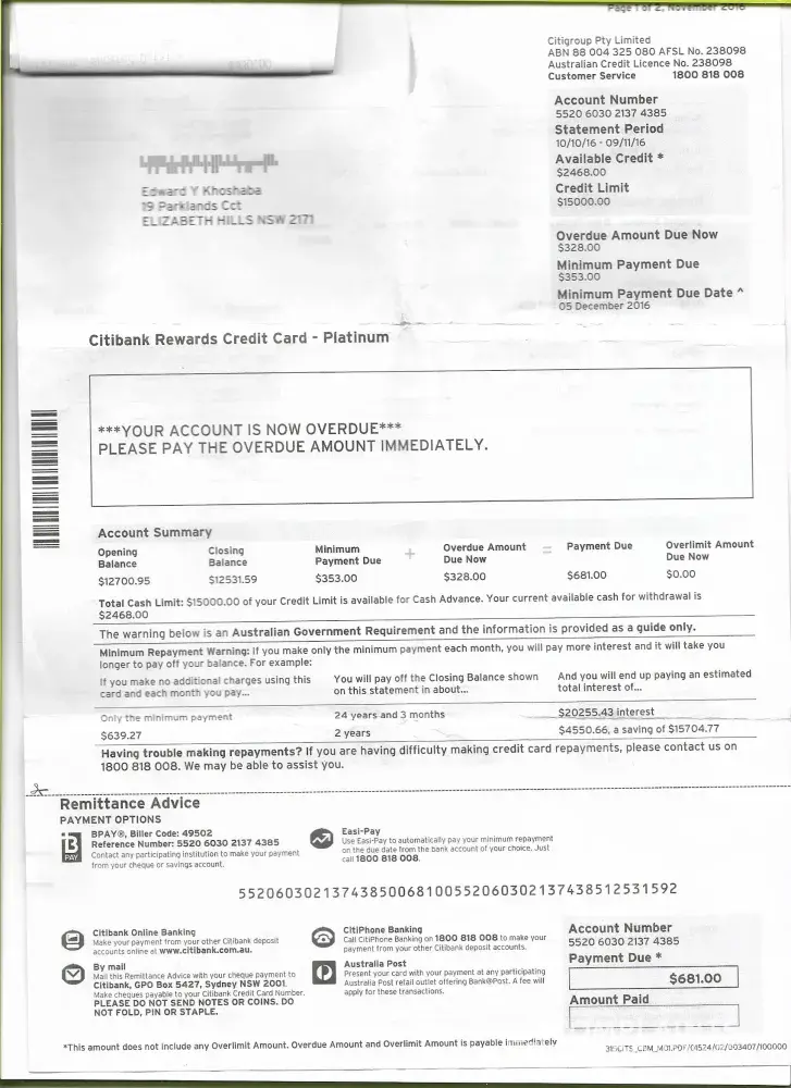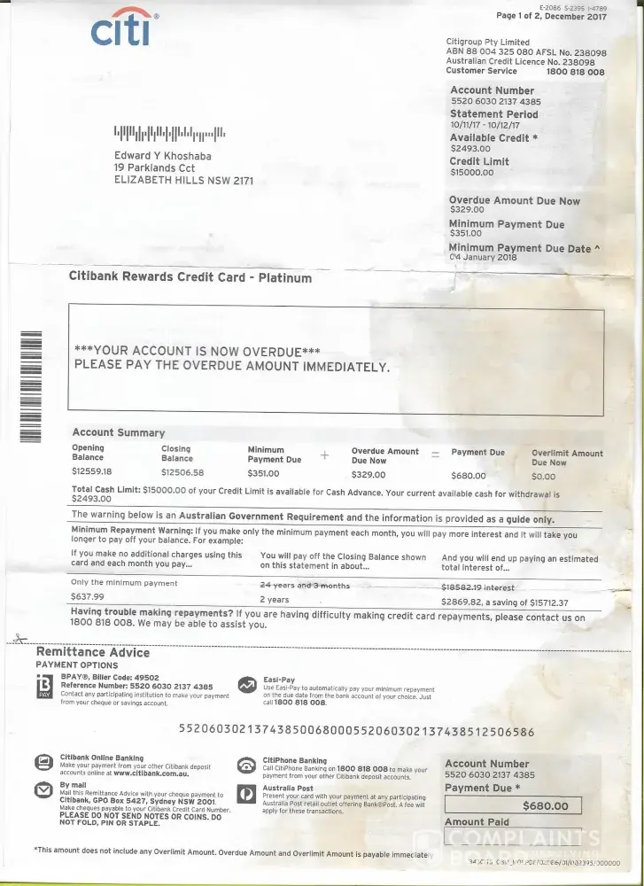 On the 05/12/2016 i received a statement from Citibank stating that i have not paid the required amount which i have on the 3rd of November 2016. I received the same statement for the period between 10/11/17 to the 10/12/17