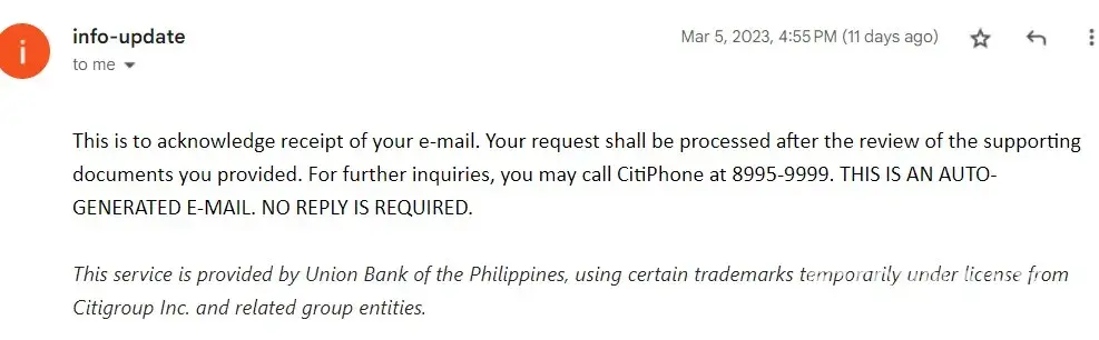 I want to update my Mobile Number for my Citi Credit Card since I am already overseas. I called their hotline and got the instructions for email and the details and attachments I needed to submit. The such amendment could take 5-7 business days, as per the CSR. Here is the timeline of my activity: