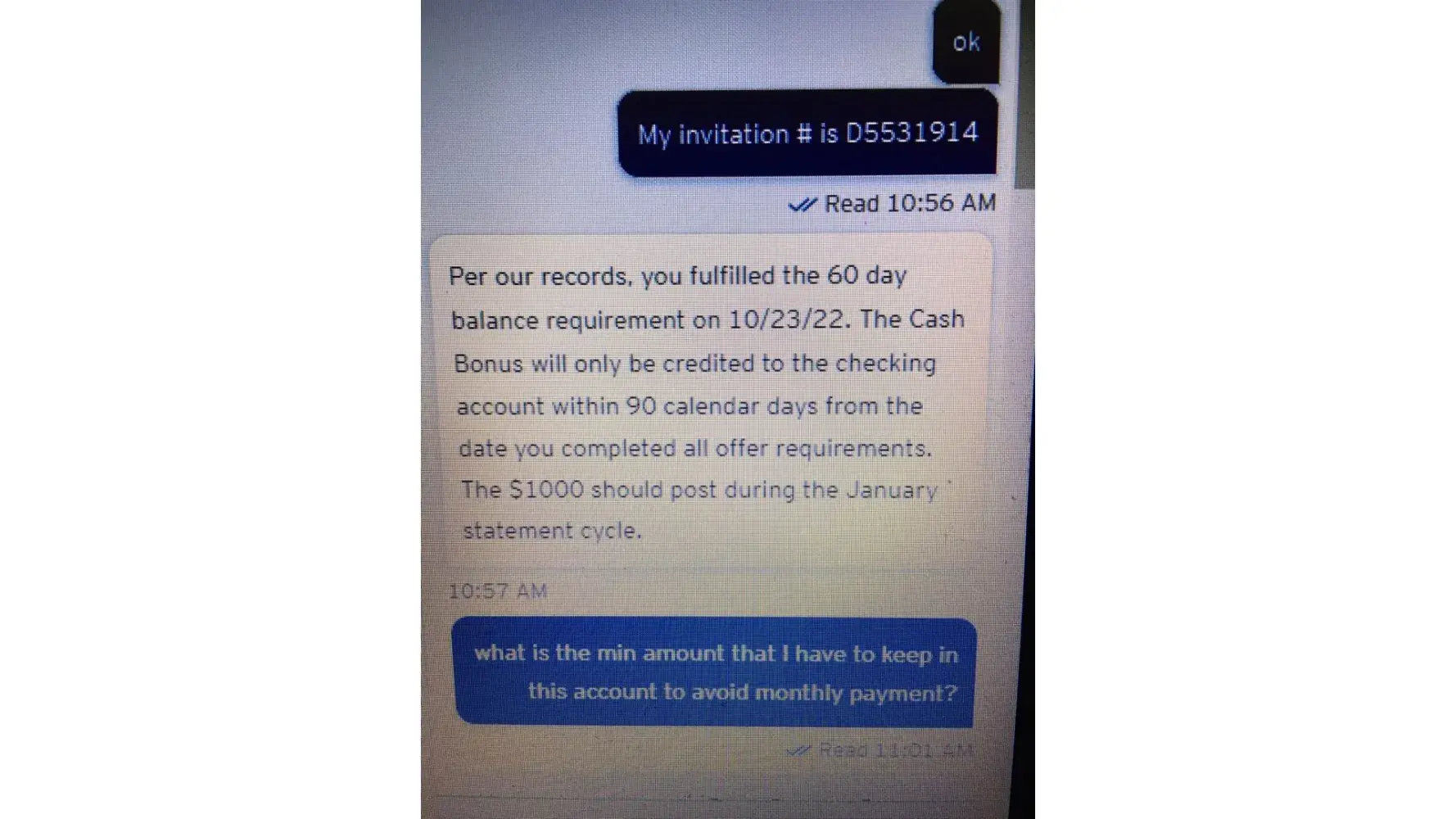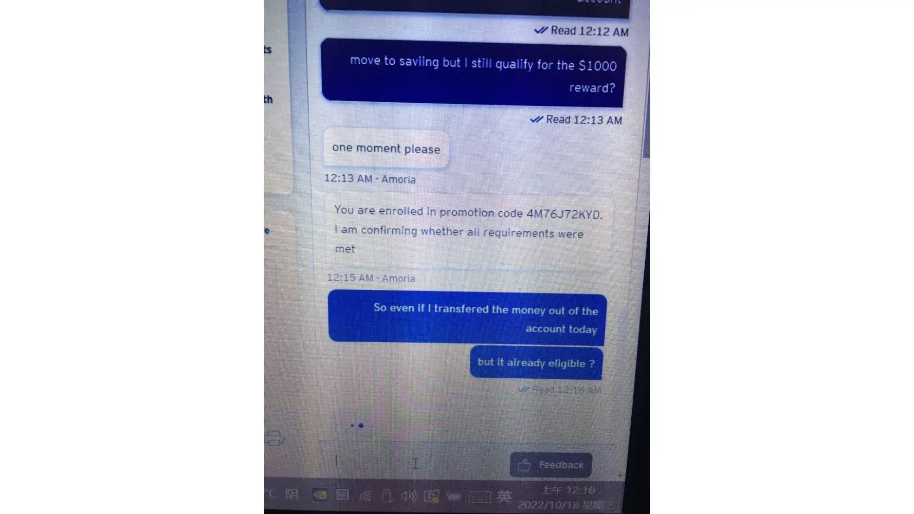 On 8/17/2022 I opened a checking account on Citibank then deposited $75000 into it before 8/24/200 by using promotion code 4M76J72KYD. Before transfering the money to my saving account on 10/28/2022, I chated with a representative, Amoria,online to confirm whether I have already qualified the cash bonus rewards, and I got a clear and positive answer for that. Amoria also replied that the bonus should be deposted into my account on around Jan 14,2023. Since I didn't check it displaying in my account on Jan 16,2023, I chat online and get a case number R107616230117 to ask me wait for 7 business days to go through processing. After 7 days past, I was being told to wait for two more days for the case still under investigation; then two more days, and other two days. Today (Jan 31, 2023) I call their customer service and try to complaint; unfortunately they ask me to wait for more 7 days. I was really unhappy and disappointed with that.