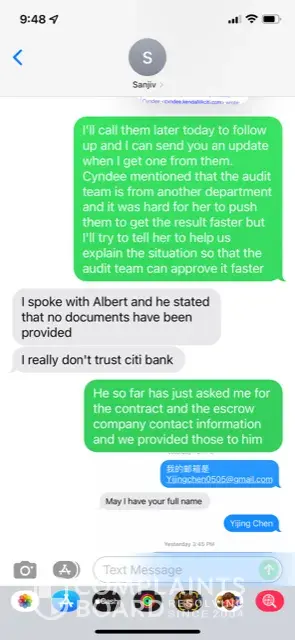 The reason we got the late punishment from the seller is that during the phone conversations that the listing agent had with Michelle, her unprofessional behavior and ambiguous words has resulted in the seller and the listing agent losing their trusts in us. They were furious and shocked about us choosing such an unprofessional loan agent who’s incapable of her job to work on our loan. Because of that, in our text messages and phone calls, the listing agent mentioned more than once that he has completely lost his trust in citi bank, and he made us to agree to working with another loan agent at a different bank that he trust at the same time to make sure that someone reliable is working on our case. He mentioned that because he doesn’t believe Michelle has the responsibility to close this case, he would give us late fee addendum for not moving to another bank sooner to close the case.