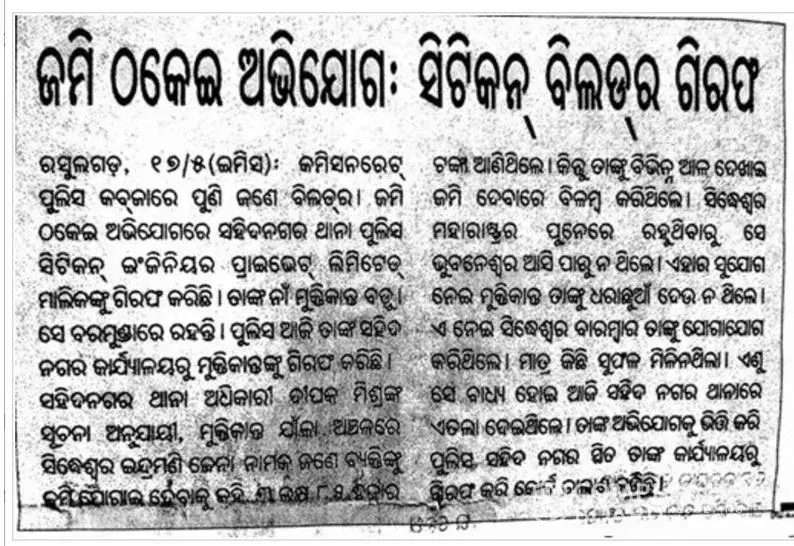 Dear Friends, I bought a plot from Citicon Engineers in their pandiapada project. When I paid all money, Mr.Antaryami Badu started registrations process. After few days I got all documents related to my purchased land.