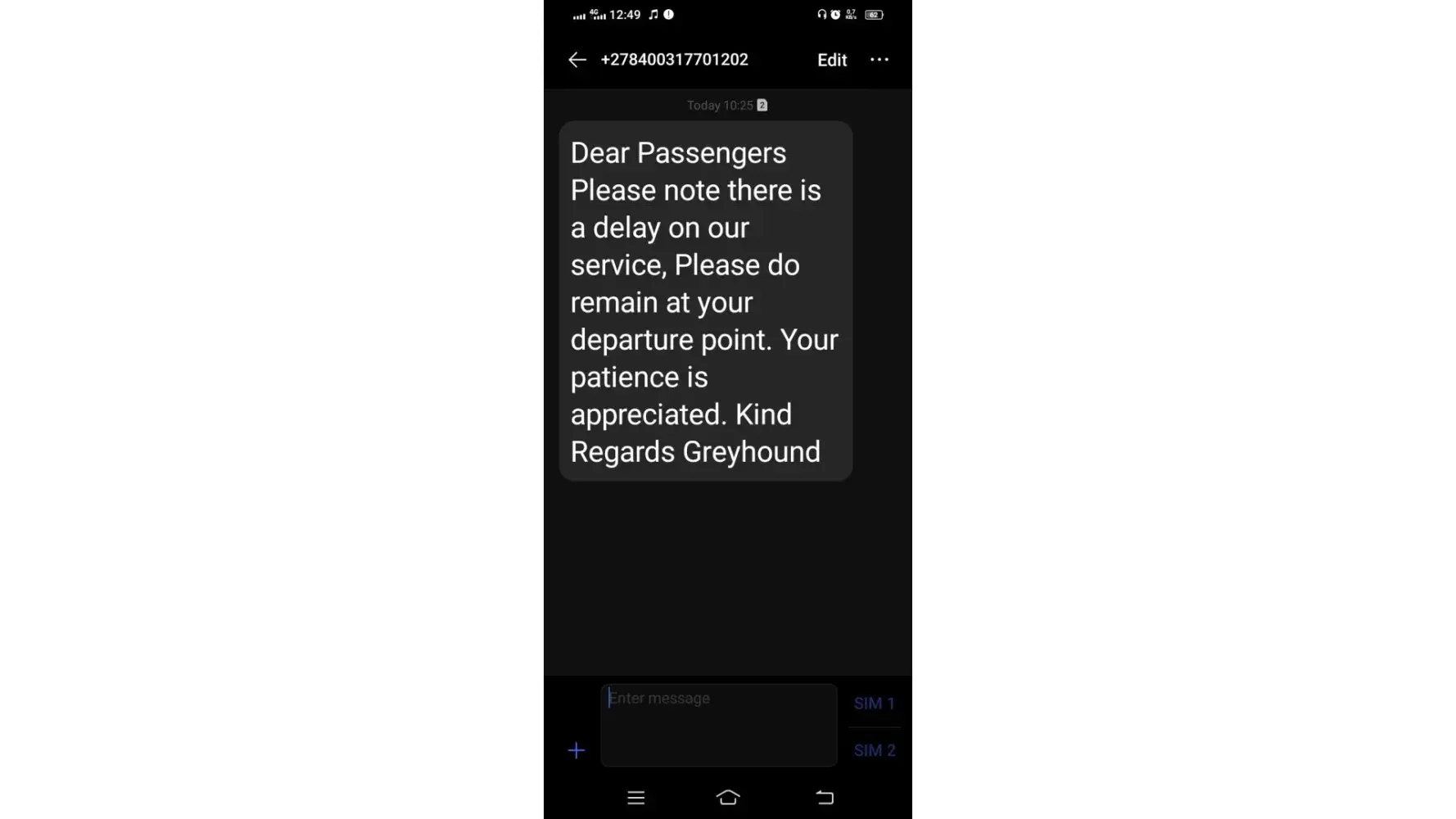 Another incident was on the 22nd of December 2022, my bus was delayed by 3 hours. Nobody could tell me or let me know that the bus was delayed. When you call the call centere number, nobody answers except the electronic voice prompt, that just loops back to the switchboard. This tells me that you guys do not care. Period.