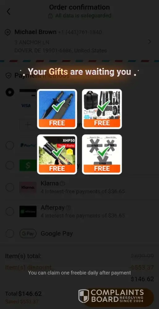 This website offers payment methods that provide the option for customers to get their money back, which could be a positive indicator of the company's commitment to customer satisfaction.