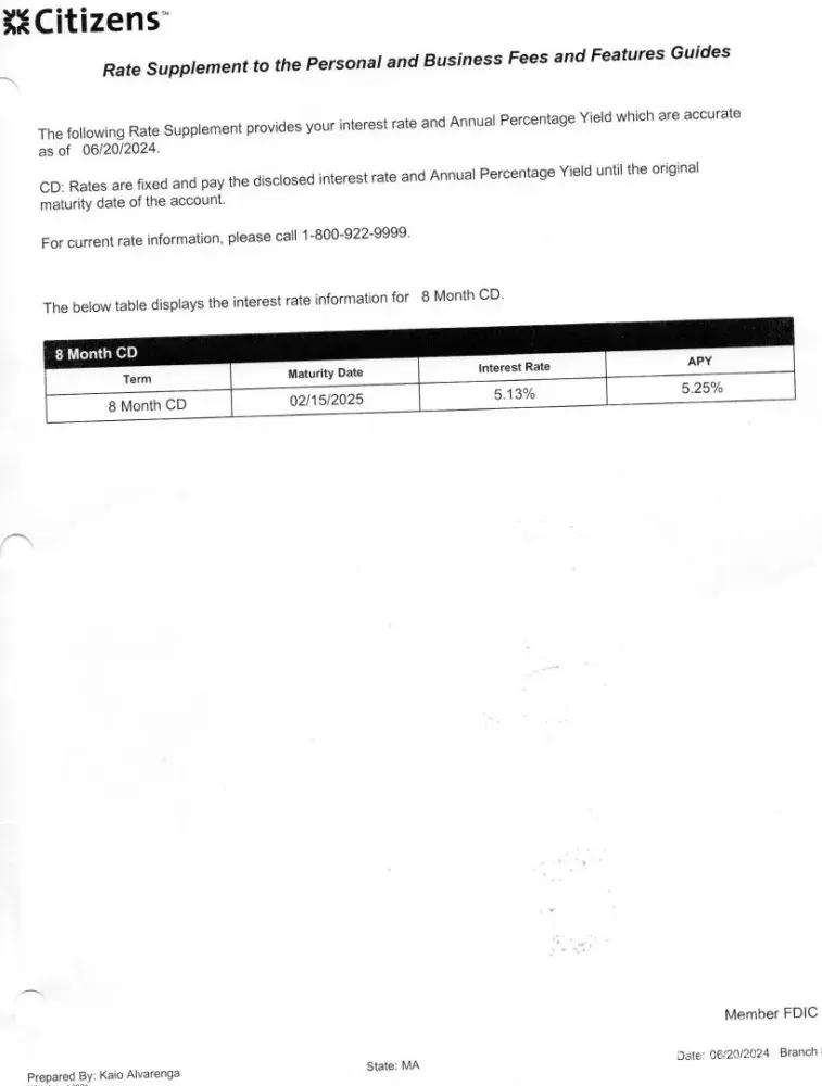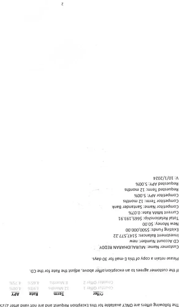 My cd matured on 02/15/2015 renewed for 8 months 4.65 APY 4./75 Mr Kaio Alvarega and Joe Montumer were instrumental in renewing my deposit of 500,000 USD at the aforementioned rate However the interest was set at 0.1%, I did get online access till july 2 2025 However it was not fully corrected. When questioned Enrique Mariot was shouting and rude ,raising his voice in a threatening way Had to close my account