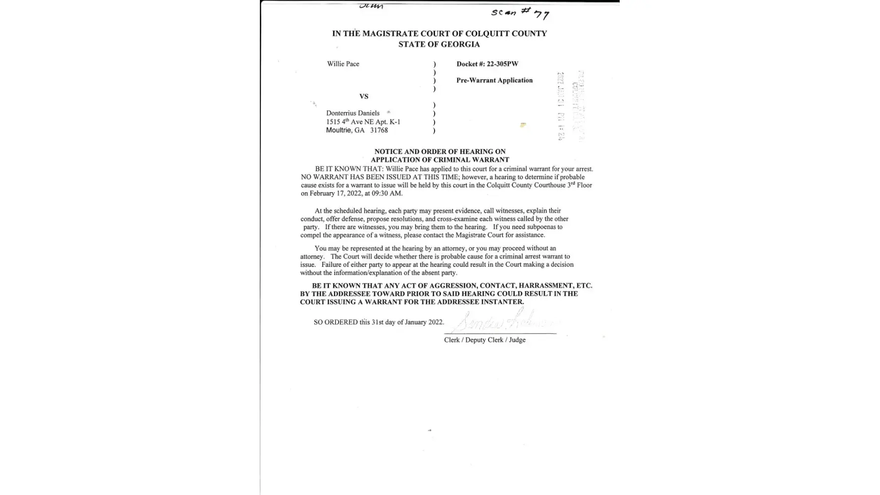Here is an excellent example of the type of society I live in. This judge would not issue a warrant for this man that did not show up for a hearing. He has made death threats toward me, but this judge did not issue a warrant for his arrest. I left the office with a piece of paper I had signed but would turn it over to them because I thought it was wrong but had my signature on it. And issued a warrant for my arrest. I could not hurt anyone with that piece of paper and the paper itself could not hurt anyone. That goes to showed you. In this society, the white man values a piece of paper, more than he does a Black Man life.