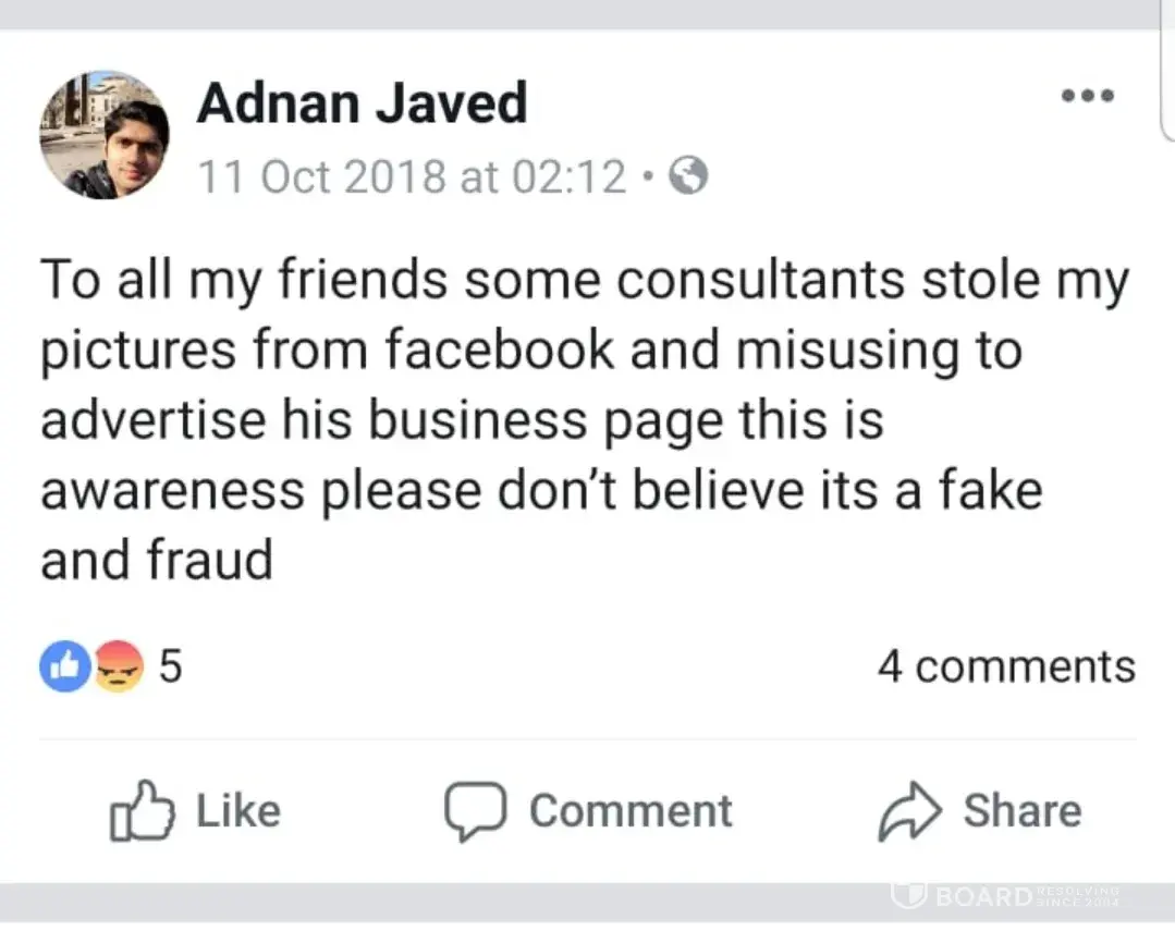 Warning for Fraud and Scam activity! Those person criminal all victims should go to nearest police station! Bewere! They run away country to country, victims are many, fake documents, all is fraud. Beware of those scamers, playing with poor people and take them only hope for better future. Under investigation for human trafficking in Pakistan. We should...