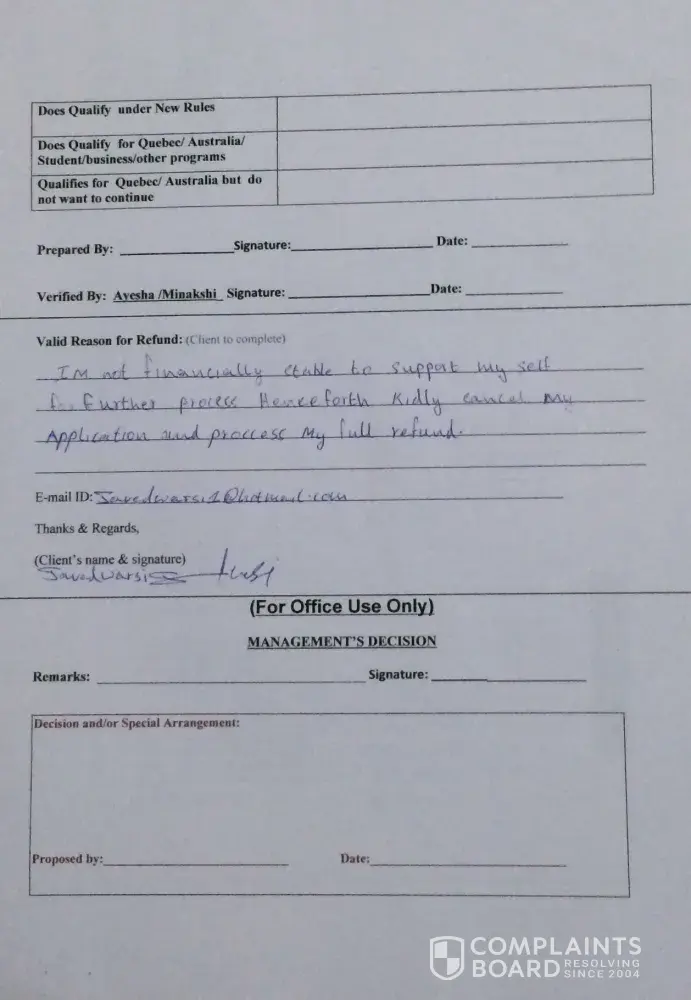 Read full complaint and 1 commentExpress Entry to Canada - refund