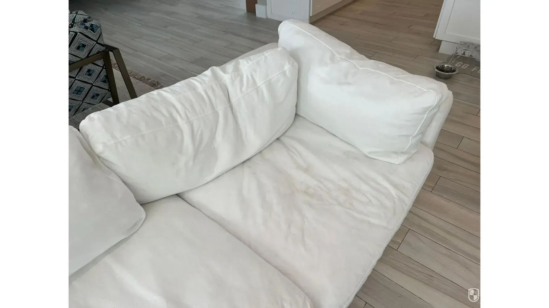 I bought this sofa three months ago and was promised by the salesman that the fabric would repel dirt and clean up easily. Reality is totally the opposite. The fabric is filthy after two months of delivery and the person they sent said it was uncleanable. Also the sofa has no structural integrity to it. You sit on it and it sinks all the way to the ground. The cushions do not hold in place and fall over the sitting area. It is a disastrous blob.