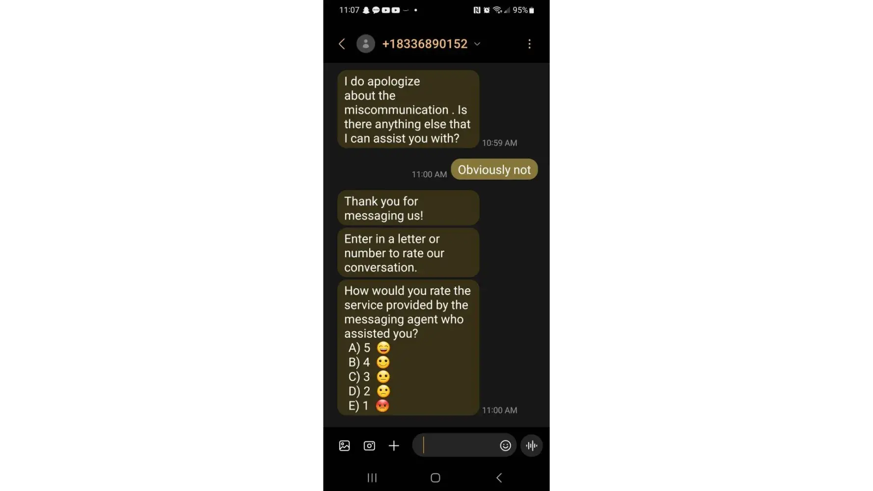 Desired outcome: Want them to pick up and give me a refund