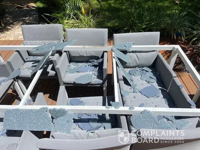 The glass outdoor table we bought less than a year ago splattered in 1000 pieces today, nobody was near the table, and we think it cracked due to the Florida heat, we have not used the table for months.