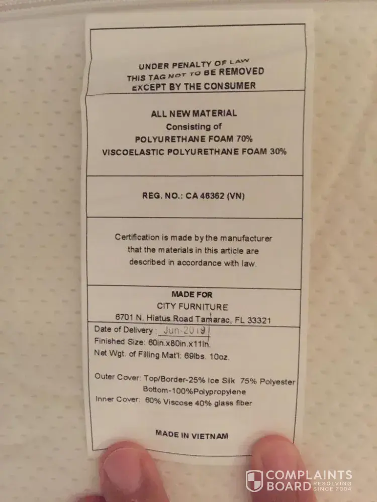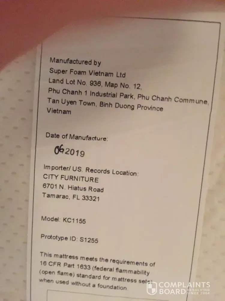 I bought a mattress from city furniture in 2014. it's only been 4 years and my mattress is completely sagging in the middle. i called city furniture to inquire about the factory warranty and every time i talk to one of the customer representatives, inlcluding their manager, they explain that i need a specific serial number listed on the tag of the mattress and without it, my mattress doesn't have warranty. the only tags that the mattress has are the ones that city furniture stapled to the mattress. even my box springs have the same city furniture tags. my mattress and the box springs have the original tags and i even have the city furniture receipt. they have all my information in their system but cannot provide the factory warranty for the mattress. i do not understand how my mattress does not have its factory warranty when i paid $1, 200.00. city furniture is the worst! after my experience with them and seeing that all the tags on the mattress and box spring are from them, i have a feeling i purchased a used mattress and not a new one.