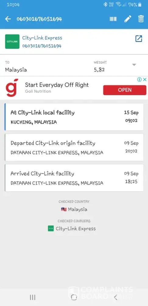 I didn't get my Parcel yet. The parcel has arrived at city link Bayan Lepas on 24th Sept and is stuck until now on 4th October. I have called so many times city link Bayan Lepas but no one pick-up my call.