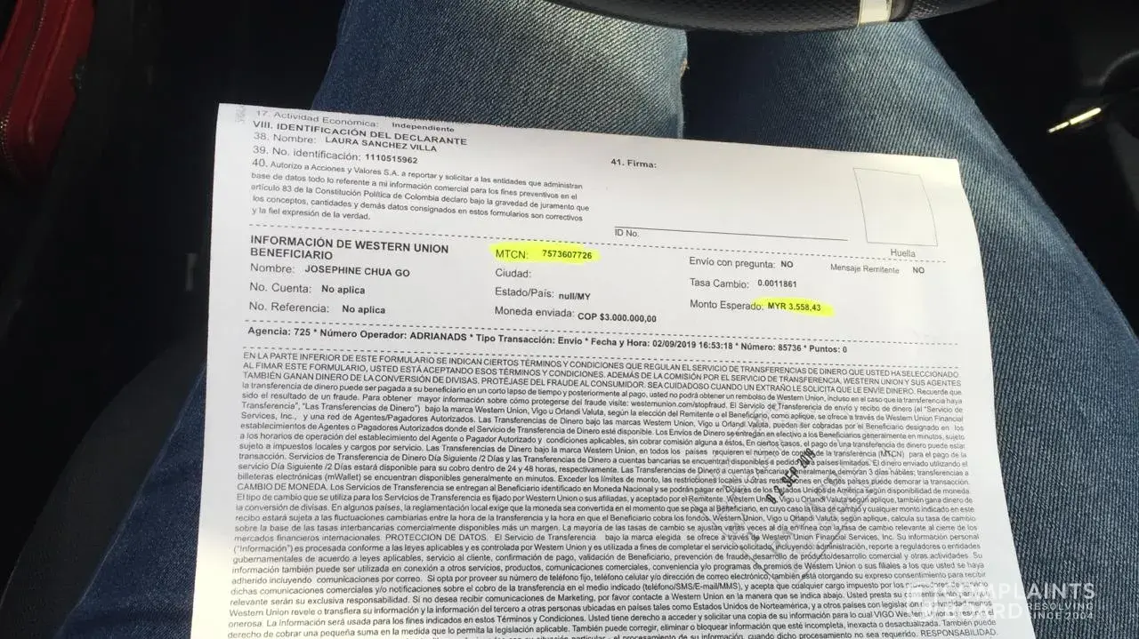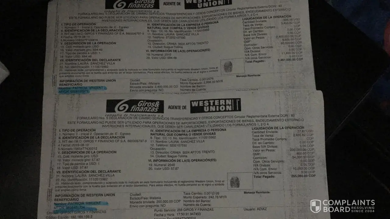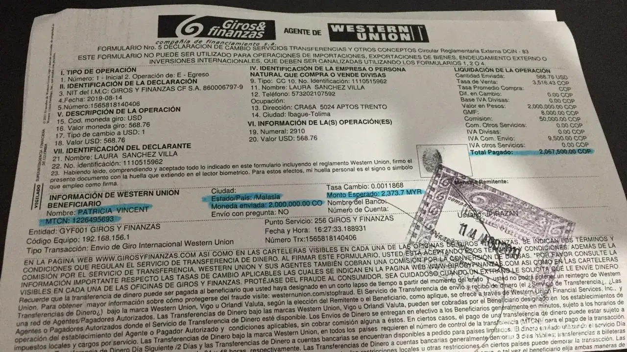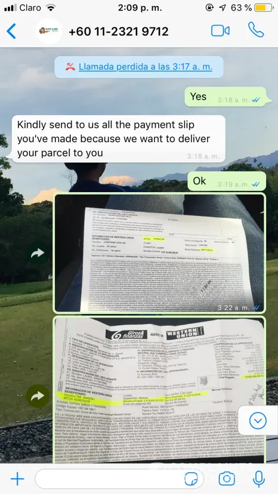 Then I need to know how many days I would have to deliver my package because to be paid for the shipment until they threatened me then I make a claim when my delivery arrives or I have to go to the authorities with my payment support because at the beginning it was 1200 USD so that they would send it to Colombia and then 1900 USD or else they would report me in the duanas.