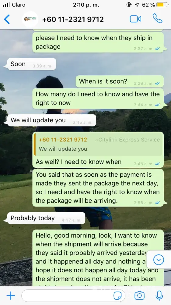 Below attached with the photo of my parcel and the phone number of sender. The phone number of sender is screenshotted after receiving my parcel.
