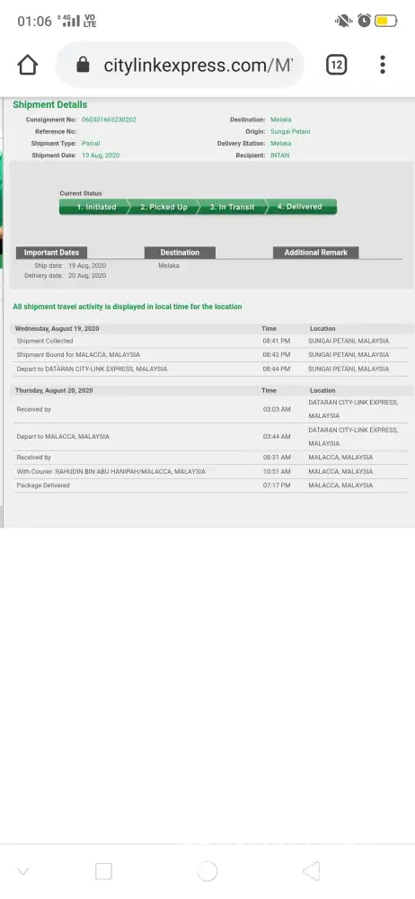 The consignment are collected from shipper place on 27 nov 2020, until 02 dec 2020 the consignee was call me (shipper) haven't receive the document yet by tension. So I help them try to contact citylink customer service centre the person in charge ms ain to handle my status and she direct to and answer me the consignment are not send to the consignee location address. What~!?