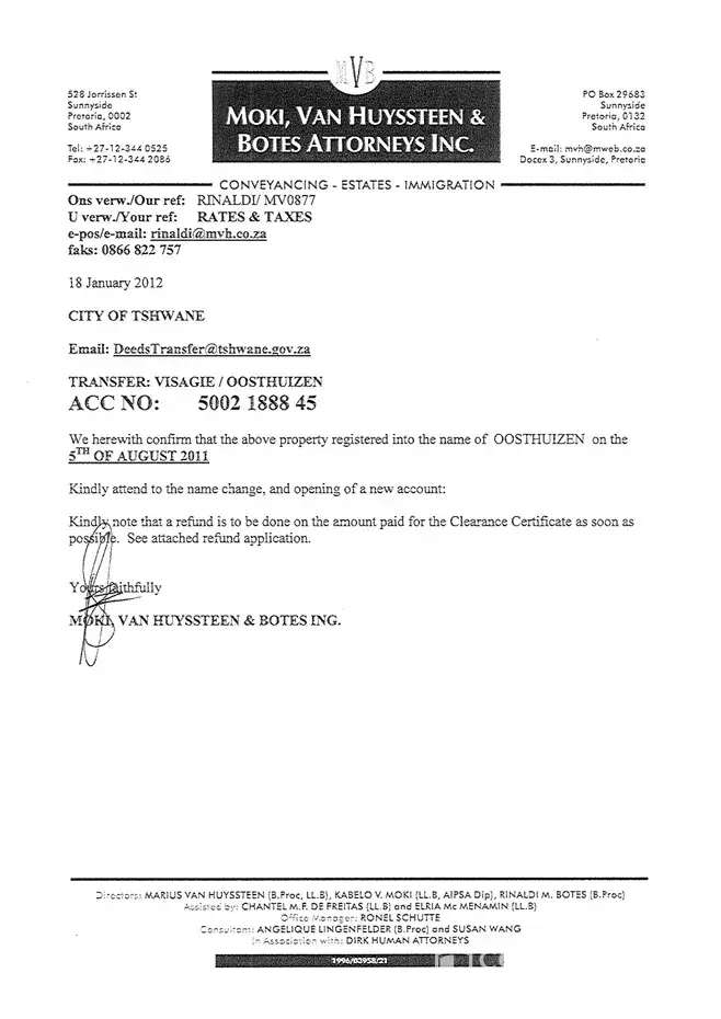 We sold our home in rooihuiskraal last year august. (account no [protected]) our municipality account was closed and we were informed that any amounts outstanding will be paid back to us. Our attorneys send through the cancellation of our account after the house was registered into the new owners name. After lots of telephone calls and emails we still...