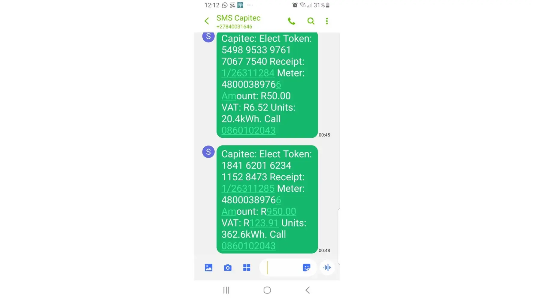 On 12 March we bought electricity from Capitec for R1 000 and got 383.0 units. A difference of 168.6 units.