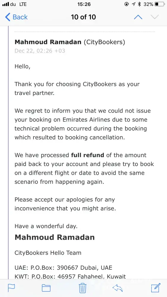 I contact Citybookers they said we did the refund on 28 Feb 2018 92, 5 KWD, but till now I didn't recived any money, I contacted them by phone many times and everytime they are saying sorry we transferred to wrong bank AC.