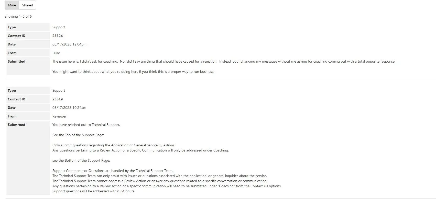 They have limited my communication to one communication per day, which is below what I’ve purchased. Customer service will not respond.