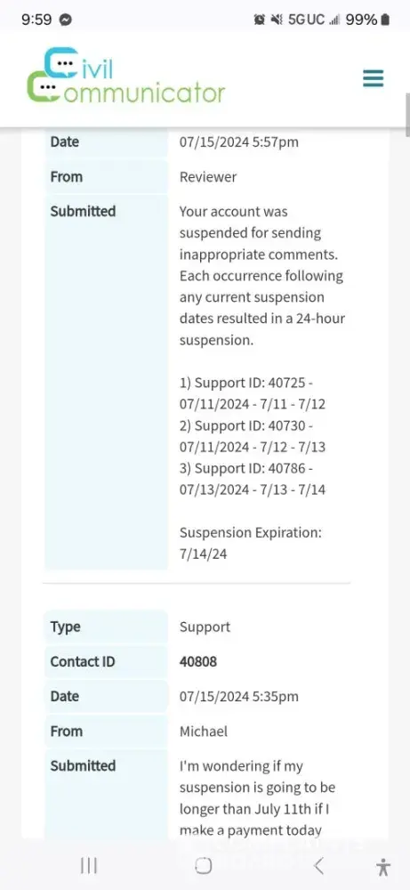 Furthermore, when I posted a negative review of the platform, they responded by suspending my account. This seems like a petty and unprofessional way to handle criticism. If this is how they treat their users, then I would caution anyone considering using Civil Communicator to look elsewhere.