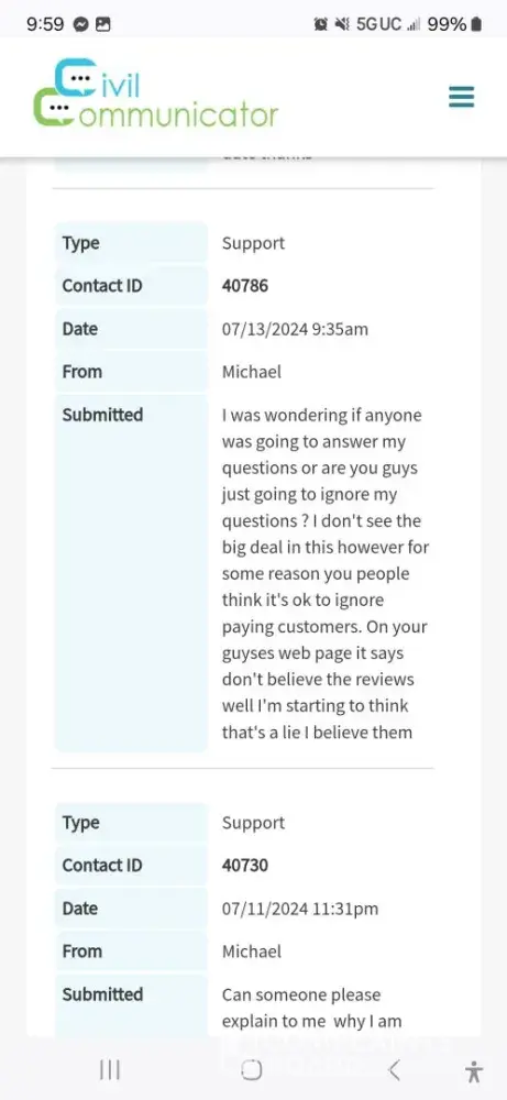 So, if you're in the market for a co-parenting communication tool, do yourself a favor and avoid Civil Communicator. They've caused me nothing but headaches and I wouldn't want anyone else to go through what I have.