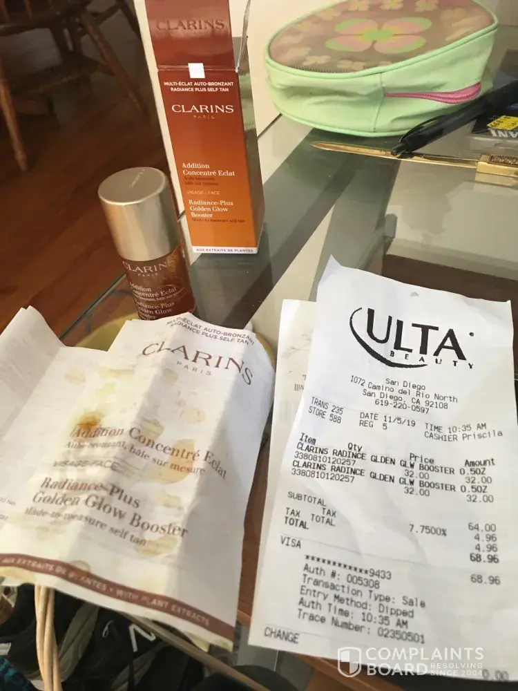Clarins has left an official reply on this complaint.