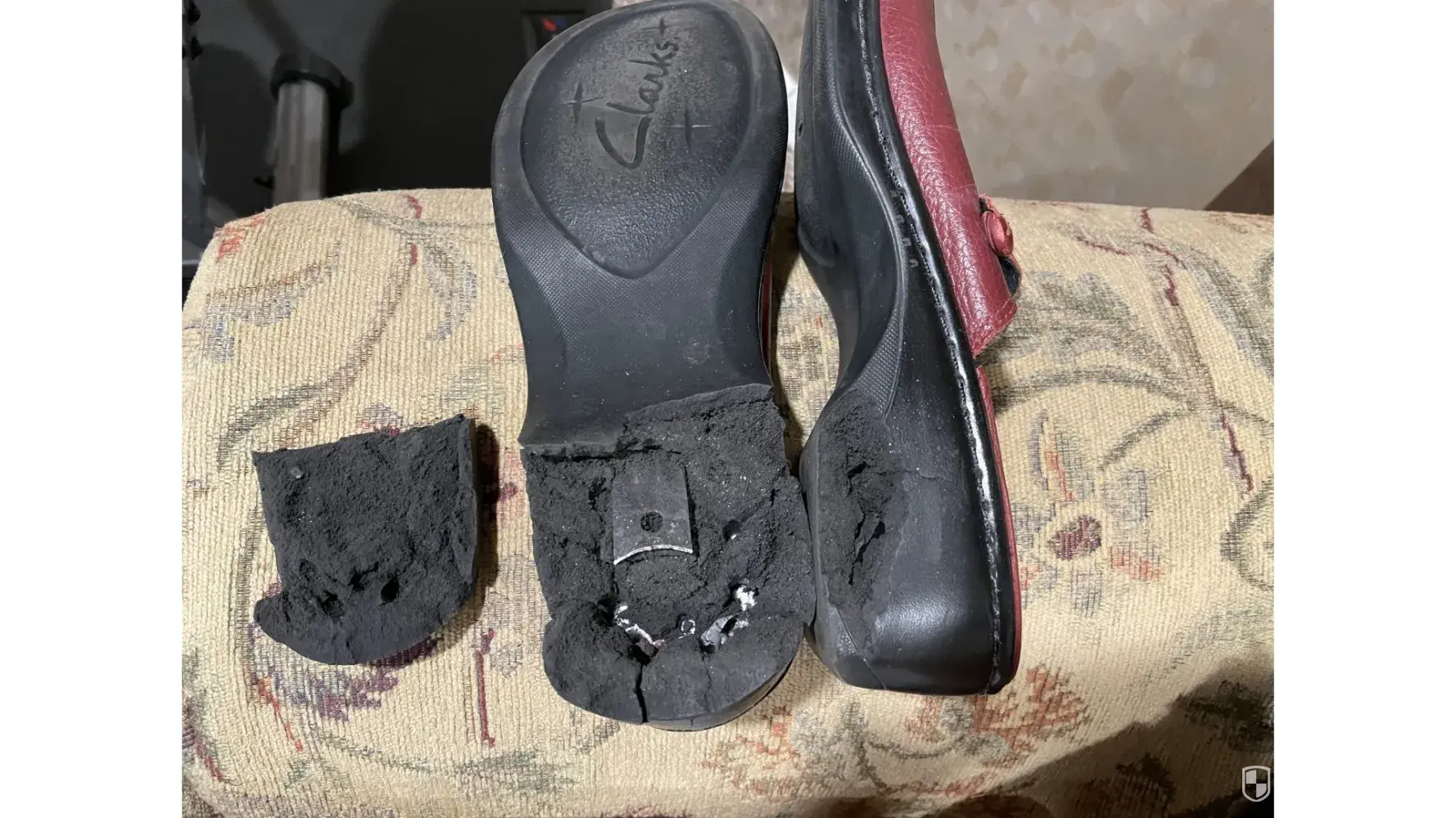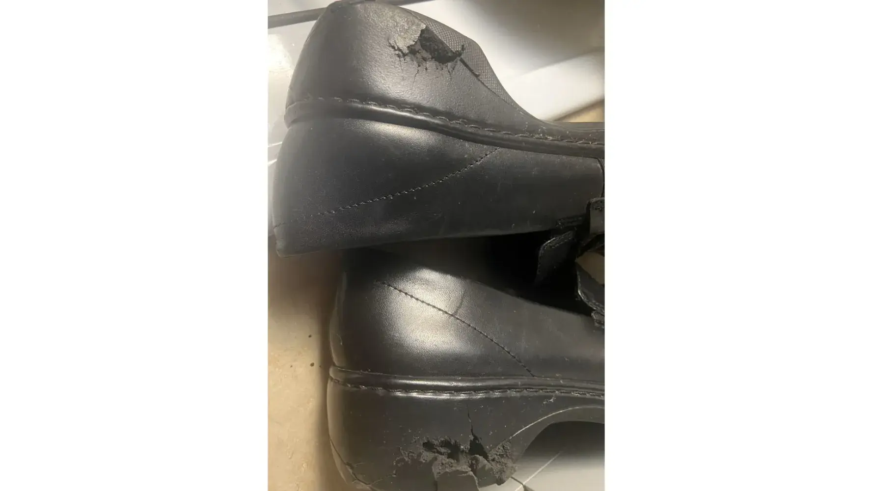 shoe heels disintegrating.