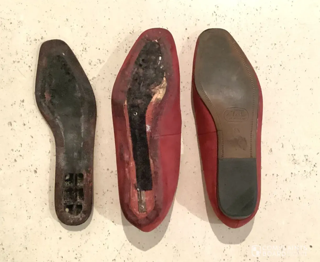 Went back to the shop and asked to speak or see the manager/in charge but only one girl was on duty and she was told (through the phone) that the person in charge does not want to speak to me and address the complaint. The sales person even had the cheek to tell me to bring the soles to the tailor and had it stitched!