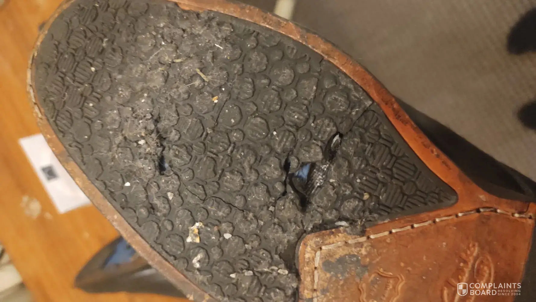 The Clark shoes that I purchased sometime ago have completely disintegrated on the sole and they become extremely dangerous and hazardous. Completely unwearable. Seems as though there is a serious defect with these shoes and I should be refunded a $100. This happened on July 16th 2022, these shoes were made in Slovakia and understanding they're 20 years old but I've never seen anything like this. As you can see in the 2nd photo they're in perfectly good condition on the top which is very deceptive about what's happened on the sole in the 1st picture