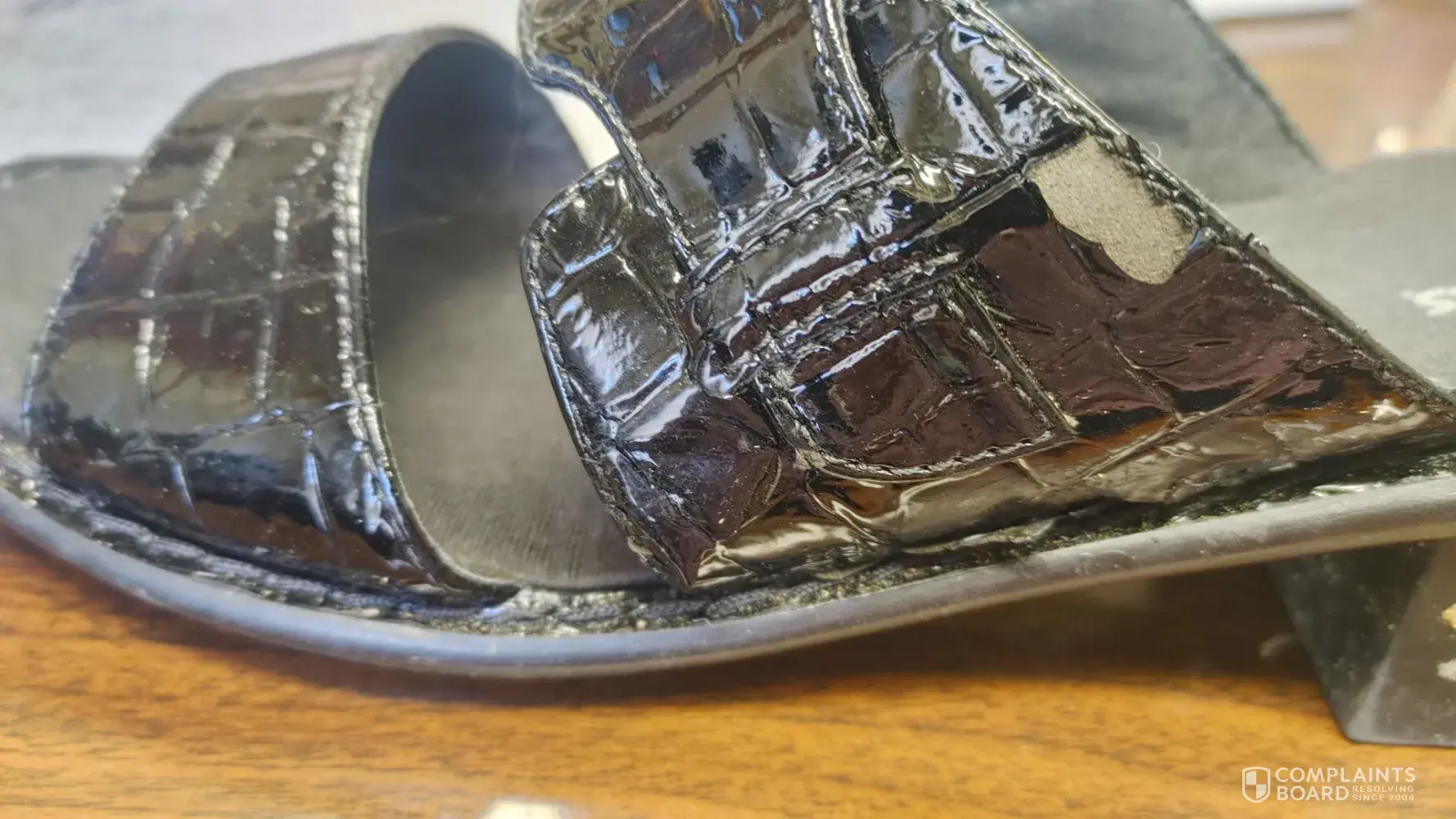 I am writing a complaint today; I have a black patent sandal 82078 in a 7m. I love the sandal, but I had to go take pictures of a house for my job this morning and got parts of my shoe wet from the grass.