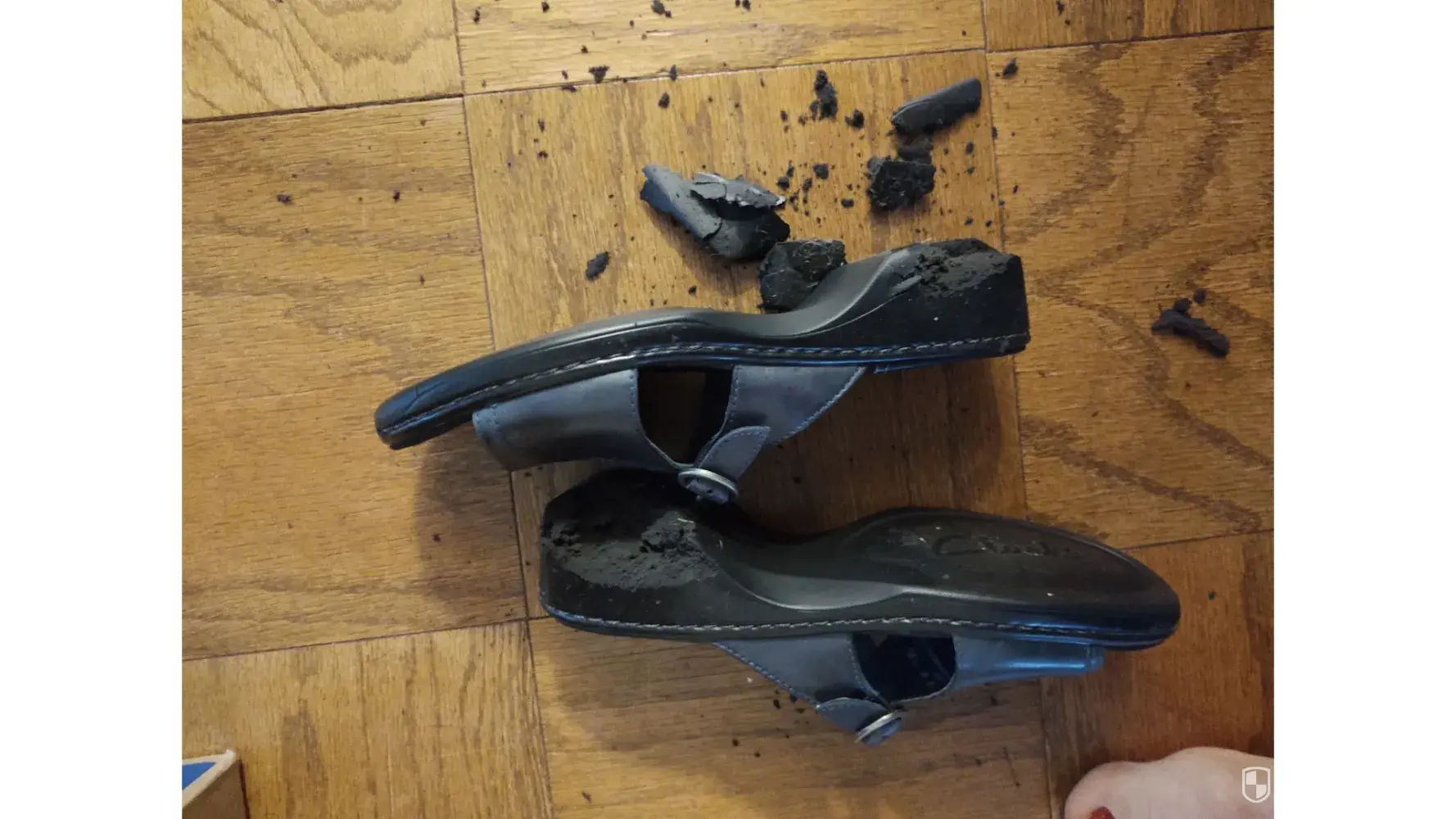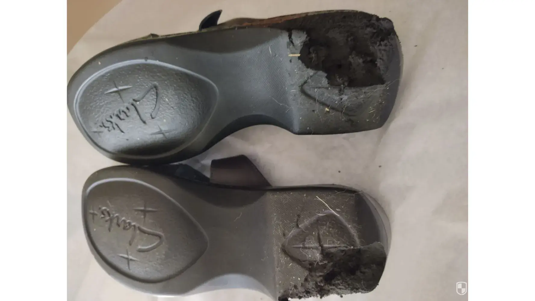 My dress clogs had the heels completely disintegrate while I was at a party. I’m 84 years old and had to leave by going down 2 pairs of steps and across a parking lot. When I checked bottoms they looked just like the others in reviews I’ve seen. Crumbled like I had walked in acid. Then as I told others what had happened I found many many people had the same experience. These shoes were perfect otherwise. And I have 3 more pairs of Clark’s that have only been worn once each. Now I cannot trust them. Will not wear. And certainly won’t buy anymore.