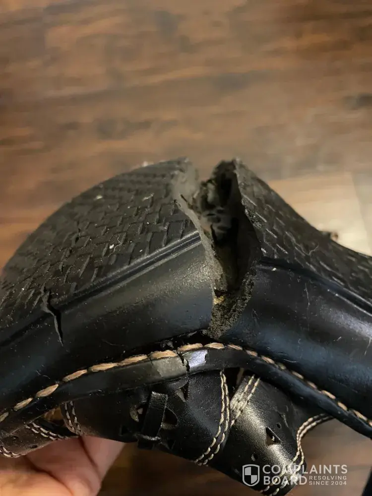 I purchased a pair black leather shoes with a thick rubber soul I only use them to go out I work in a hospital so I do not wear them at work and I want to get them out the other day open the top of the original shoebox they came in and one she was fine and the other one the soul was separate from the shoe plus it was crumbled to pieces and mini bread crumbles and it's so infuriating not to get a response from anything from from your company. You have many faithful buyers and I originally started buying from you because of my mother when my father was stationed in England. Very discouraging.