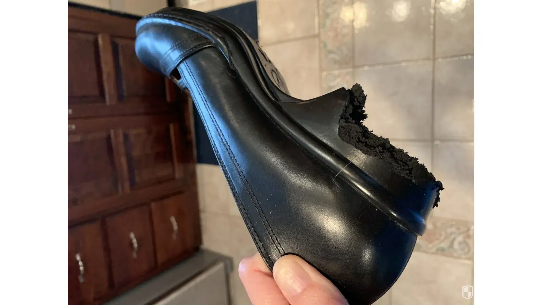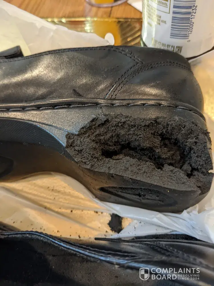 Was greatly surprised to find my twice worn shoes were disintegrating under my feet.