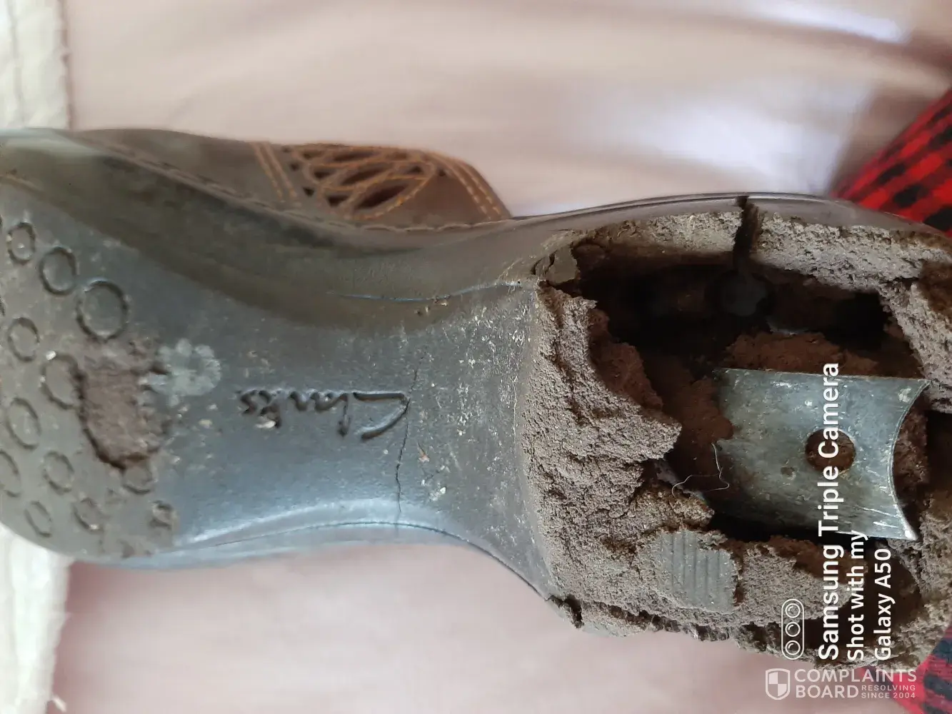 Same problem here... I have a pair of Clark mules, with about a 2 inch heel. Hardly ever worn them, and had them stored in a plastic sweater container under my bed. The leather is pristine, and the soles showed very little signs of wear. Pulled them out, just the other day, to run errands. First stop was to get my bloodwork done. As I was walking out of LabCorp, my footing felt strange on my left foot. I was too embarrassed to stop, as I walked out of the lobby, to inspect what was going on. I basically hobbled out to my car. As I returned to my car, and looked down at the shoe, I saw the whole heel had crumbled apart. All that was left was the hint of some sort of spring mechanism for heel support. I thought "WTH!"... Returned home because I surely wasn't getting anything else done with those shoes. Shameful too, because they are the cutest pair of shoes.