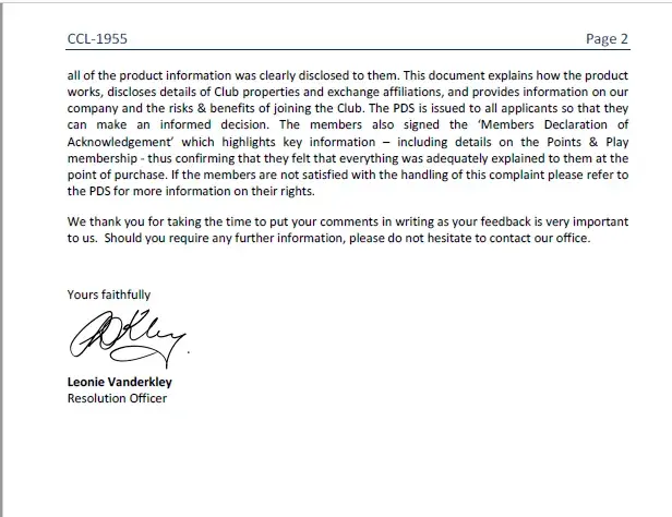 We have been offered $7000 refund of our $10490 membership and after going to the Dept of Fair Trading and the Financial Ombudsman we finally have the 2 nights accommodation booked, and our transfer, but the stumbling block seems to be that we want to see the "cancellation deed" with non disclosure clause before agreeing to it and signing it. We were told the $3000 was an exit fee, which we have said they cant use that term as by their own PDS the exit fee is $315.