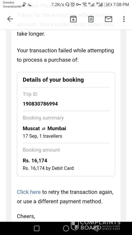Cleartrip refund not received for bd.320/- trip id no.[protected]
