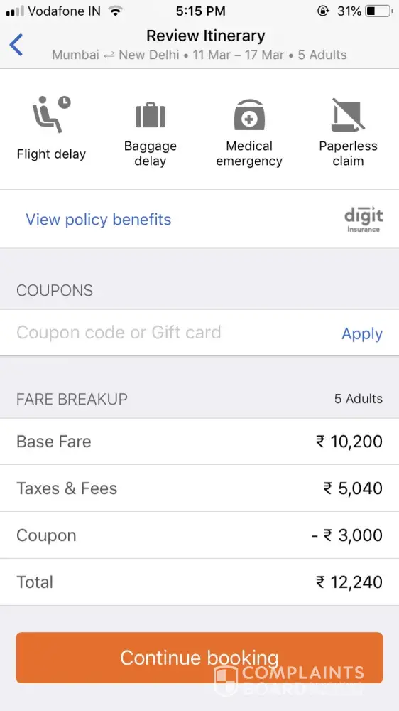 Cleartrip visa 75 coupon not issued after booking the ticket