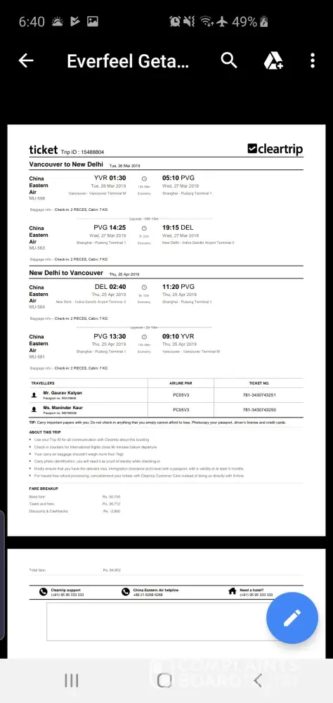 This is the kachra site, nobody book ticket from this site. They are asking different thing and doing differently. Don't believe there customer executive they all are frood. I am asking to him change the my wife sirname but customer executive is asking to cancel the ticket, we will fine you only 70qr your other amount is refound in your account. But now they asking different story, bulddy lawyer people. Dont trust on this site and dont book ticket from cleartrip kachra.