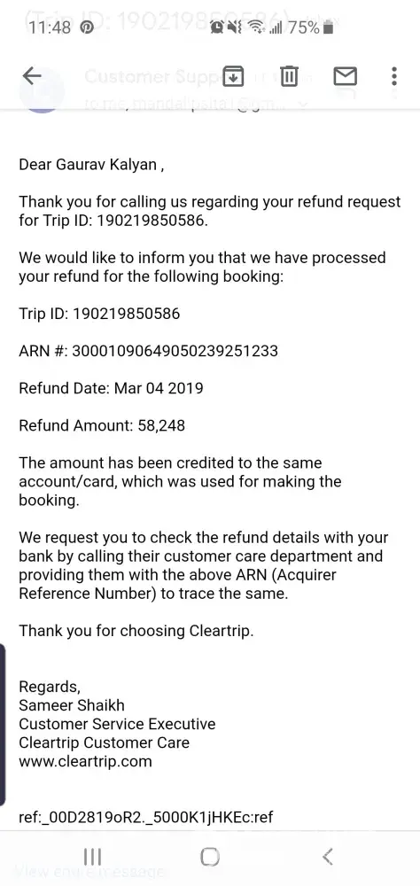 Booking done on 29/06/19. Money transferred to cleartrip. Booking was successful and tickets in 5 hours i read on screen... Then after 5 hours, booking failed due to some airline problem i was told. Money will be refunded in 3 to 4 days which later changed to 3 to 4 working days and today to 5 to 7 working days... Why your customer care is careless i. Changing goal post to cover up cleartrip delays. Your system appears fully geared up to cover flaws in refunds. How do i communicate to ceo of clear trip so that he knows fraud.