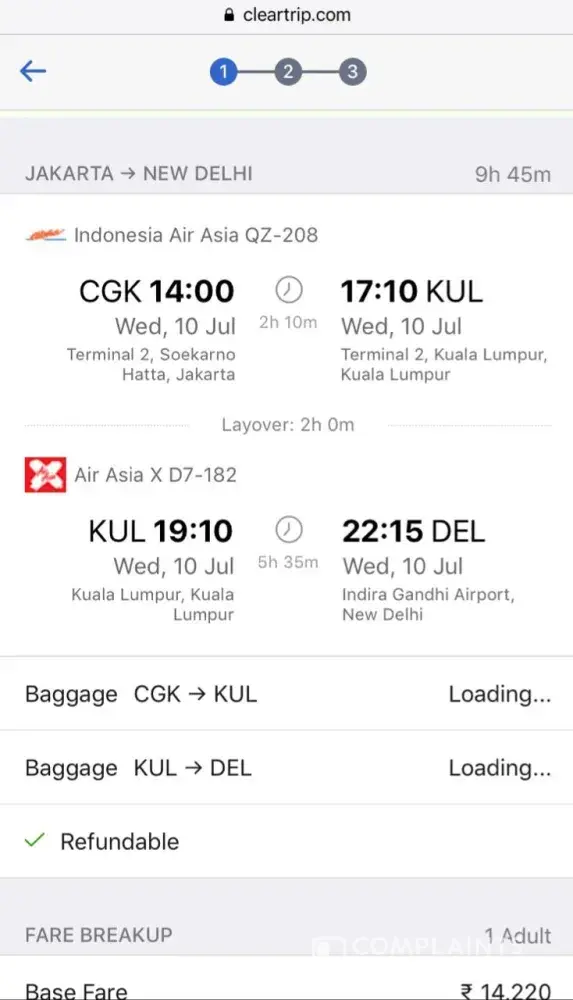 Further, while reviewing the comments from other customers, i think it is a custom for cleartrip first to show that the ticket is refundable and post booking, it becomes non-refundable.